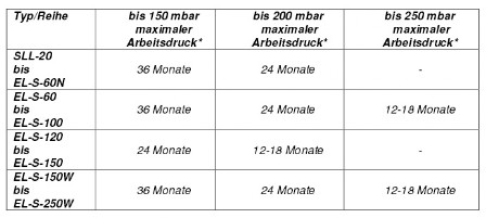 Folgende Empfehlungen bezüglich der Austausch-Intervalle ergeben sich aus den Erfahrungen unserer Kunden beim Einsatz der SECOH Kompressoren bei einer Umgebungstemperatur zwischen -10°C und +40°C und einer Luftfeuchtigkeit von unter 80%